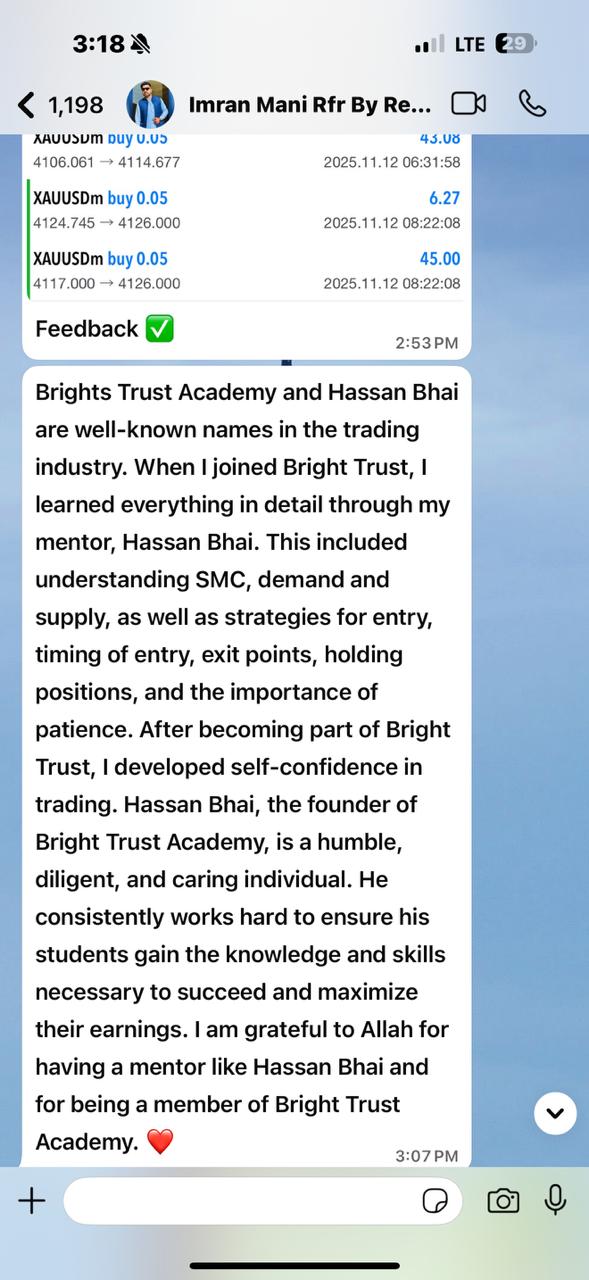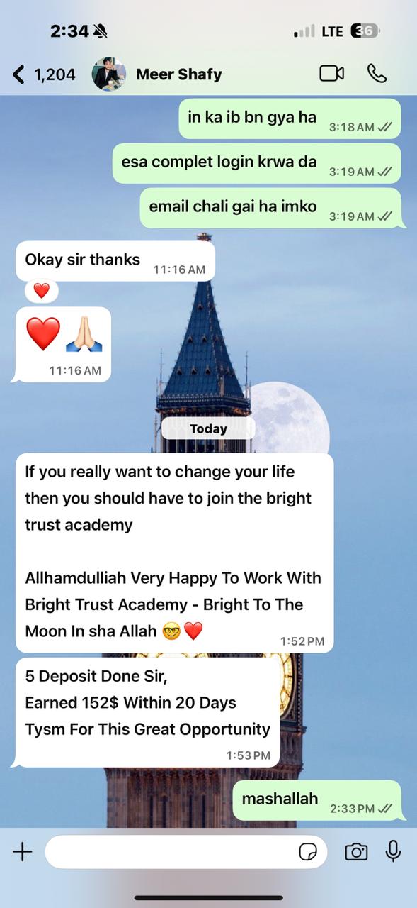 Bright Trust Academy Success Ratio from our customers about our experience with Trading and all services